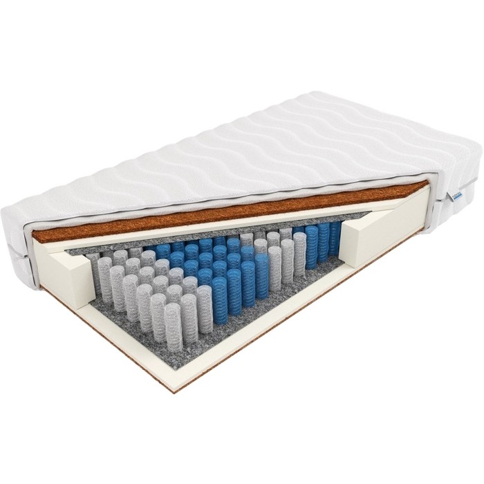Матрасы от компании Frankhauer, модель Atlas 120x200, Тип пружинный (независимый), Жесткость средняя / выше средней (3/4), двусторонний и Мультизональный +, а также Количество слоев 9 шт.