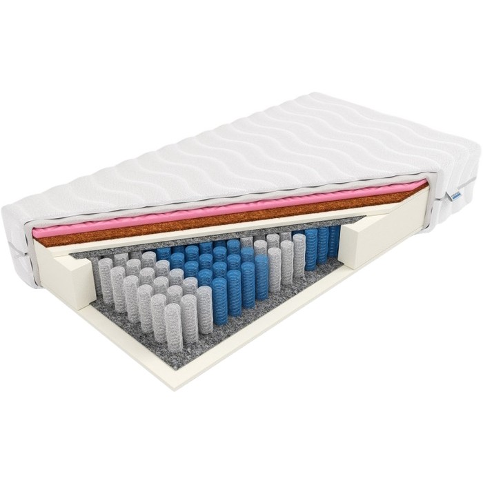 Матрасы от компании Frankhauer, модель Modest 140x200, Тип пружинный (независимый), Жесткость ниже средней / средняя (2/3), двусторонний и Мультизональный +, а также Количество слоев 9 шт.