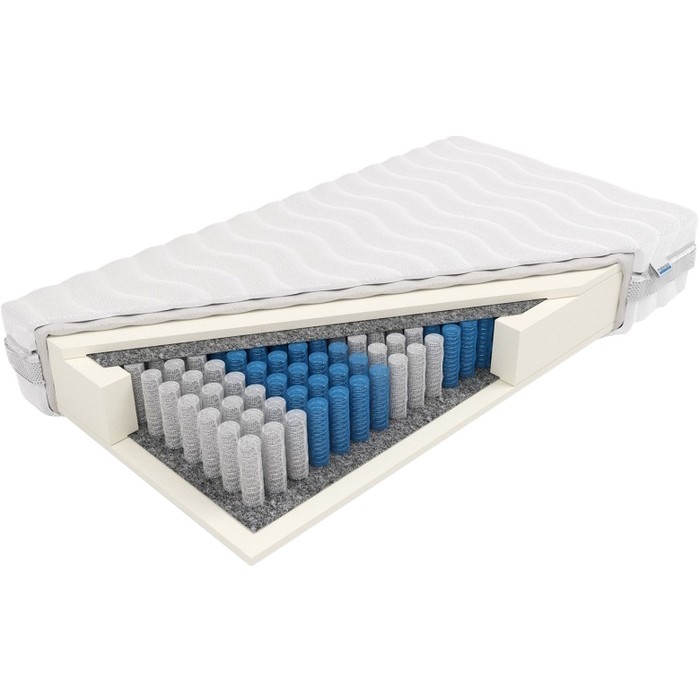 Матрасы от компании Frankhauer, модель Posejdon Plus 90x190, Тип пружинный (независимый), Жесткость ниже средней (2) и Мультизональный +, а также Количество слоев 7 шт.