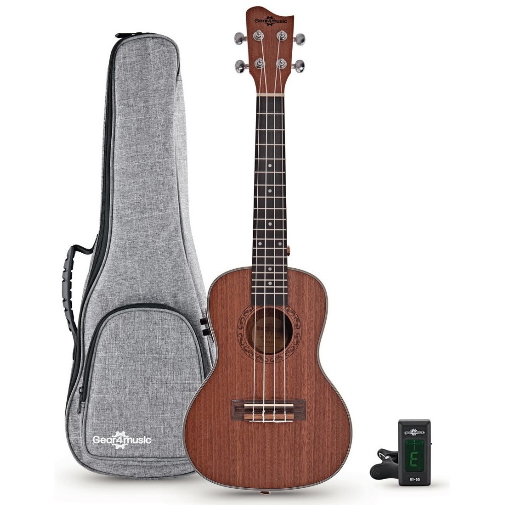 Акустические гитары от компании Gear4music, модель Sapele Concert Electro-Ukulele Pack, Тип укулеле, Количество струн 4 и Звукосниматель +, а также Эквалайзер +.