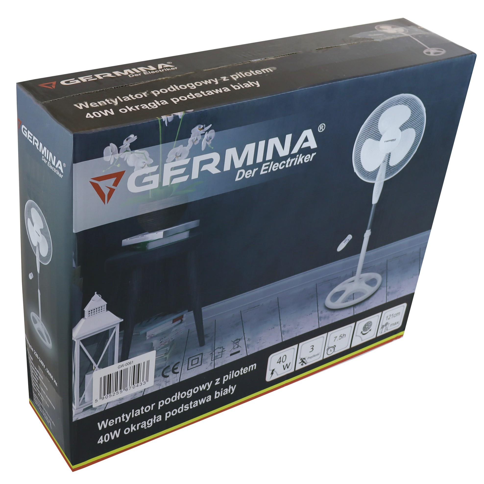 Вентиляторы от компании Germina, модель GW-0061, Тип напольный на ножке, Механизм осевой и Потребляемая мощность 40 Вт, а также Количество скоростей 3.