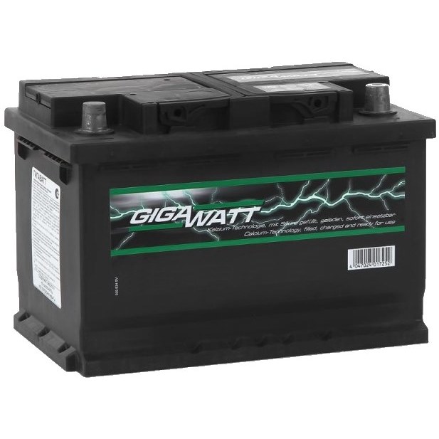 Автоаккумулятор от компании Gigawatt, модель Standard (G62L), Тип стартерный, Назначение авто и Обслуживание необслуживаемый, а также Форм-фактор европейский.