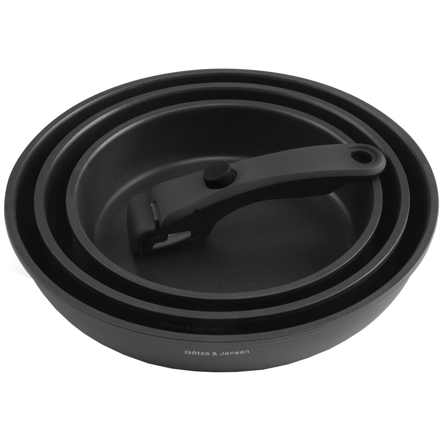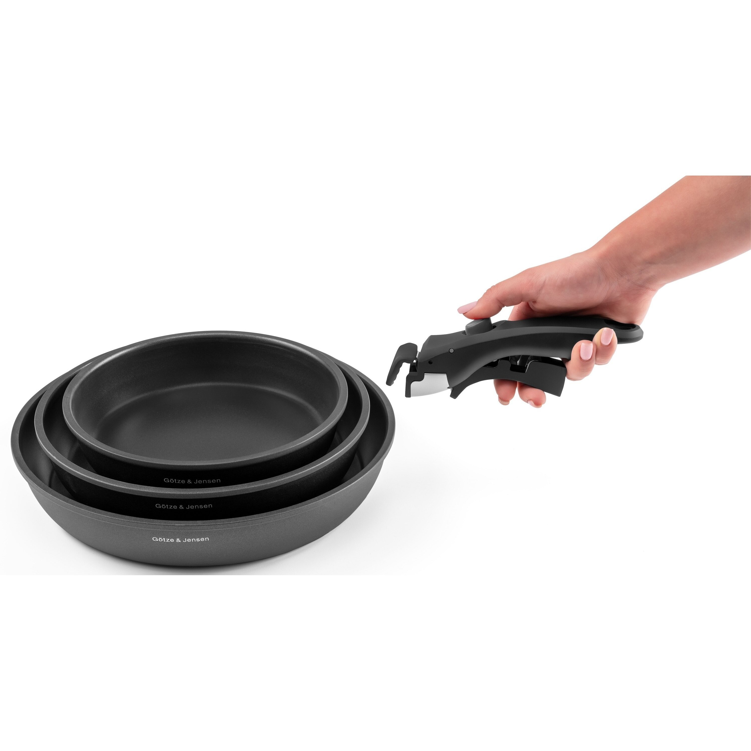 Сковородки от компании Gotze & Jensen, модель Vienna FPS901, Тип классическая, Кол-во в комплекте 3 шт и Размер 20 см / 24 см / 28 см, а также Материал сковороды алюминий.