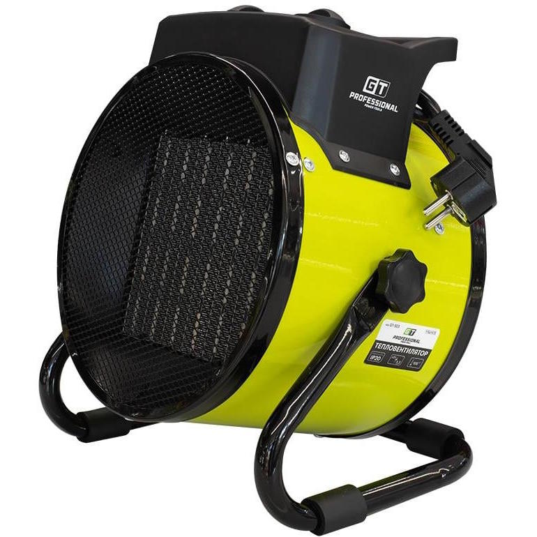 Тепловые пушки от компании GT, модель GT-303, Источник питания электрическая, Макс. тепловая мощность 3.3 кВт и Макс. площадь обогрева 33 м², а также Напряжение питания 1ф (230 В).
