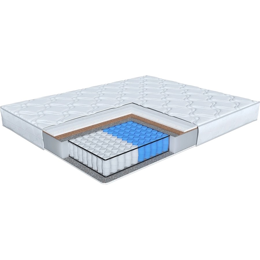 Матрасы от компании Guten Kauf, модель Base Amberg 80x200, Тип пружинный (независимый), Жесткость средняя / выше средней (3/4), двусторонний и Количество слоев 8 шт, а также Наполнитель пена (Mix Foam), кокосовая койра, термовойлок.