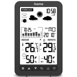 Метеостанции от компании Hama, модель La Gomera, Измерения прогноз погоды / внутренняя температура / внешняя температура / внутренняя влажность / 20 ~ 95% / / внешняя влажность / 20 ~ 95% / / атмосферное давление, Тип внешнего датчика беспроводной и Кол-во датчиков 1 шт, а также Радиус действия 50 м.