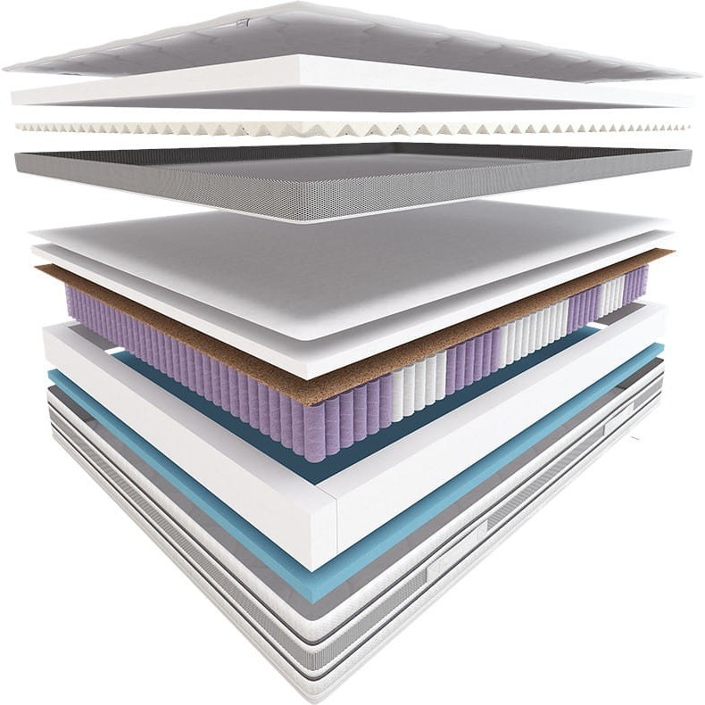 Матрасы от компании Hilding Anders, модель Electro 100x200, Тип пружинный (независимый), Жесткость низкая / высокая (1/5), двусторонний и Количество слоев 7 шт, а также Наполнитель пенополиуретан, сизаль, латекс.