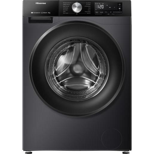 Стиральные машины от компании Hisense, модель WF3S 8043 BB3, Тип загрузки фронтальная загрузка, Загрузка 8 кг и Объем барабана 54 л, а также Макс. скорость отжима 1200 об/мин.