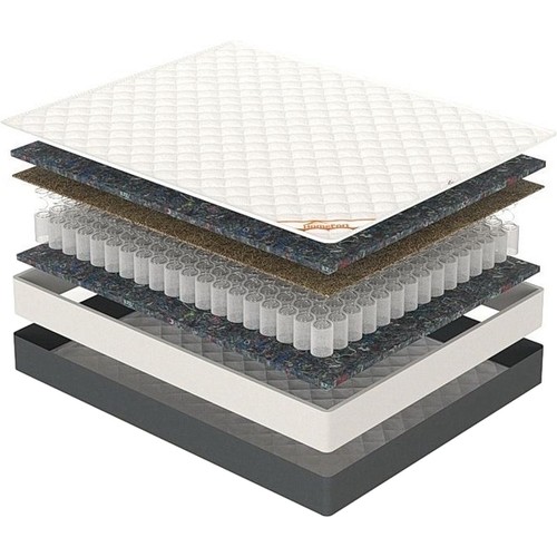 Матрасы от компании Homefort, модель Eco Cocos 80x200, Тип пружинный (независимый), Жесткость выше средней / высокая (4/5), двусторонний и Количество слоев 4 шт, а также Наполнитель термовойлок, кокосовая койра.