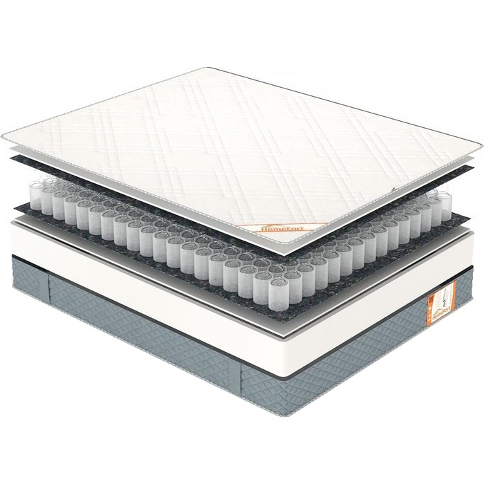 Матрасы от компании Homefort, модель Spring Hard 140x200, Тип пружинный (независимый), Жесткость высокая (5) и Количество слоев 6 шт, а также Наполнитель пена (Spring Foam), шерсть, термовойлок.