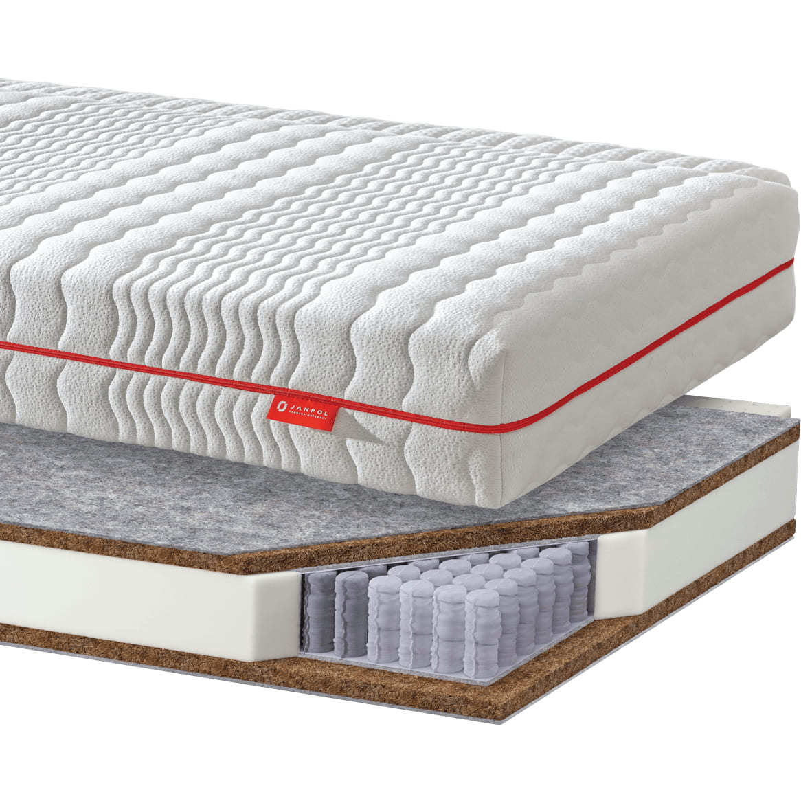 Матрасы от компании Janpol, модель Erebu 180x190, Тип пружинный (независимый), Жесткость высокая и Количество слоев 7 шт, а также Наполнитель кокосовая койра.