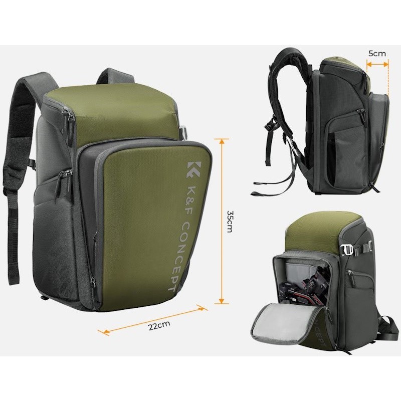 Сумки для камер от компании K&F CONCEPT, модель KF13.128V1, Тип рюкзак, Назначение для зеркальных фотокамер и Объем 25 л, а также Внешние отделения 3 шт.