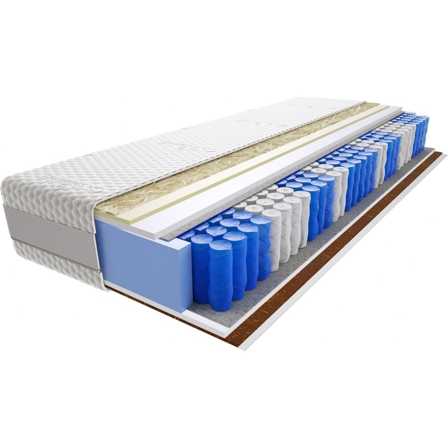 Матрасы от компании Kaszmirowysen, модель Hinti Lux 180x190, Тип пружинный (независимый), Жесткость средняя / выше средней (3/4), двусторонний и Количество слоев 9 шт, а также Наполнитель овечья шерсть, пена (Visco Memory), пена, войлок, кокосовая койра.
