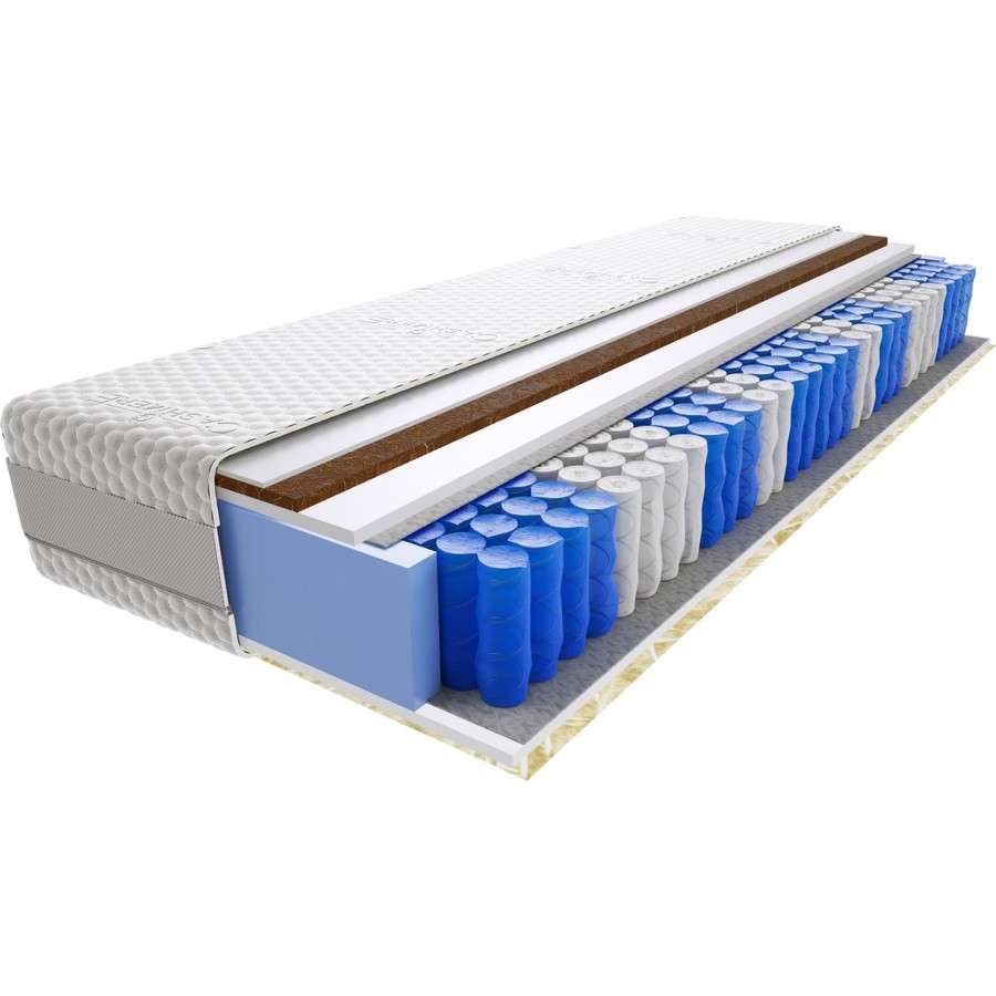 Матрасы от компании Kaszmirowysen, модель Pers Lux 90x190, Тип пружинный (независимый), Жесткость средняя / высокая (3/5), двусторонний и Количество слоев 9 шт, а также Наполнитель кокосовая койра, пенополиуретан, войлок, овечья шерсть.