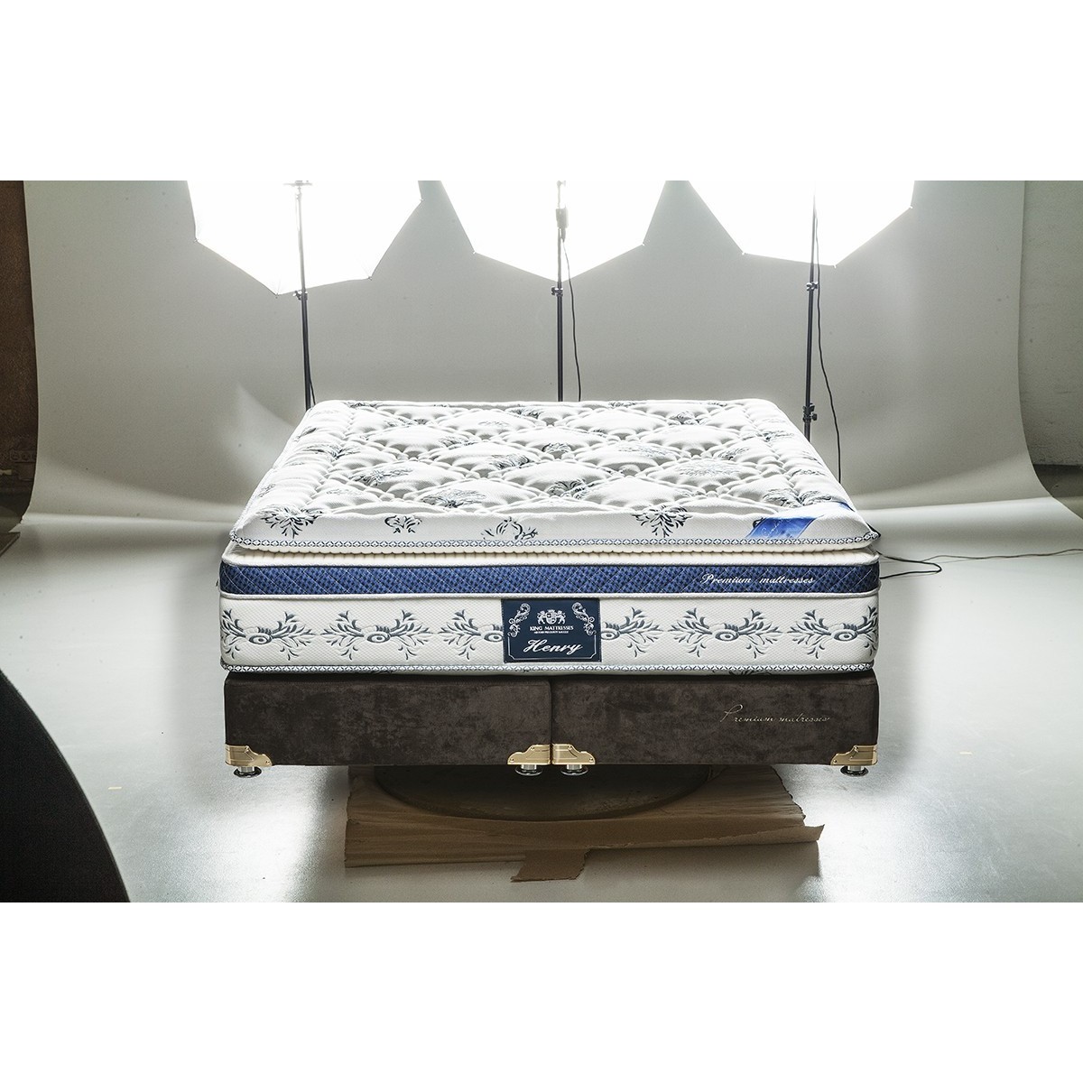 Матрасы от компании King Mattresses, модель Henry 160x190, Тип пружинный (независимый), Жесткость средняя (3) и Количество слоев 8 шт, а также Наполнитель вискоэластик, латекс, пенополиуретан, термофайбер, пена Memo Flex.