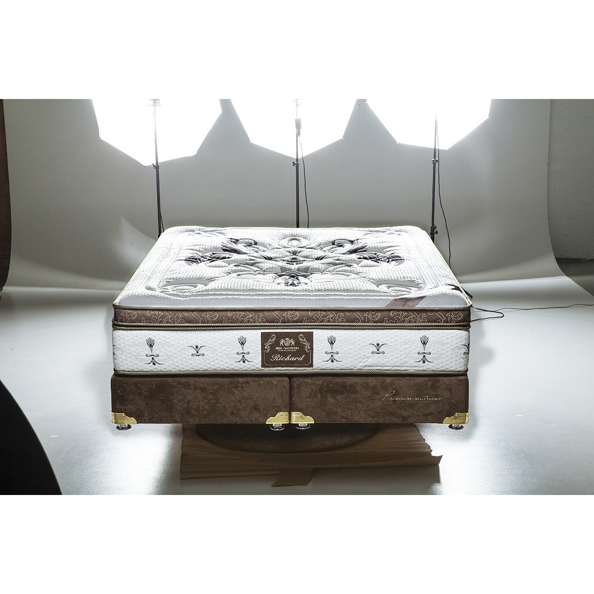 Матрасы от компании King Mattresses, модель Richard 80x190, Тип пружинный (независимый), Жесткость низкая (1) и Количество слоев 10 шт, а также Наполнитель вискоэластик, латекс, пенополиуретан, термофайбер, пена Memo Flex и Pr.