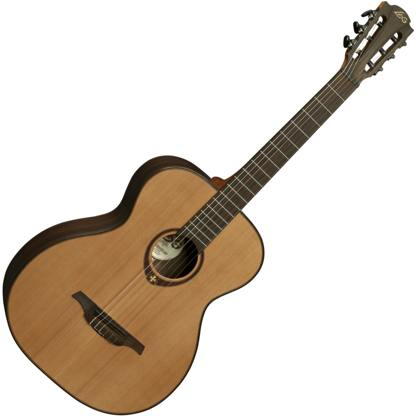 Гитара от компании LAG, модель Tramontane TN300A, Тип классическая, Количество струн 6 и Размер 4/4, а также Корпус цельный верх.