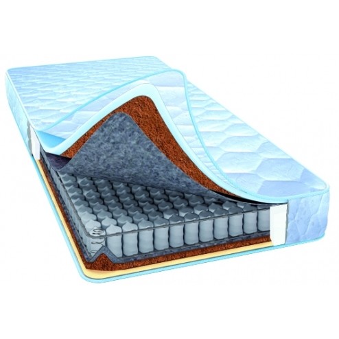 Матрасы от компании Latona Prime, модель BlueMarine Korall 90x190, Тип пружинный (независимый) / Pocket Spring /, Жесткость средняя (3) и Количество слоев 7 шт, а также Наполнитель хлопок, пенополиуретан, кокосовая койра, термовойлок, латекс, шерсть.