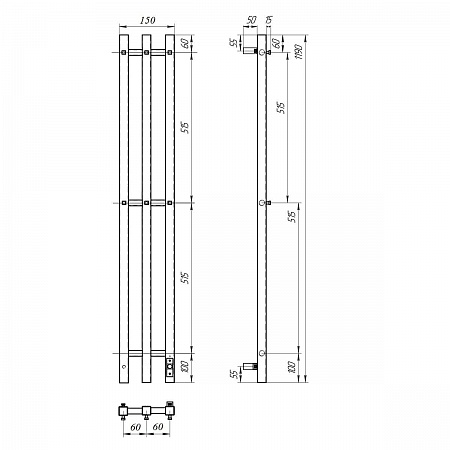 Полотенцесушитель электрический 80x1200 POINT Деметра (PN12812 П3) диммер справа
