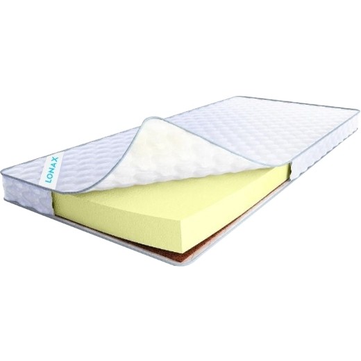 Матрас от компании Lonax, модель Roll Cocos (200x190), Тип беспружинный, Жесткость средняя/высокая и Количество слоев 2 шт, а также Двусторонний +.