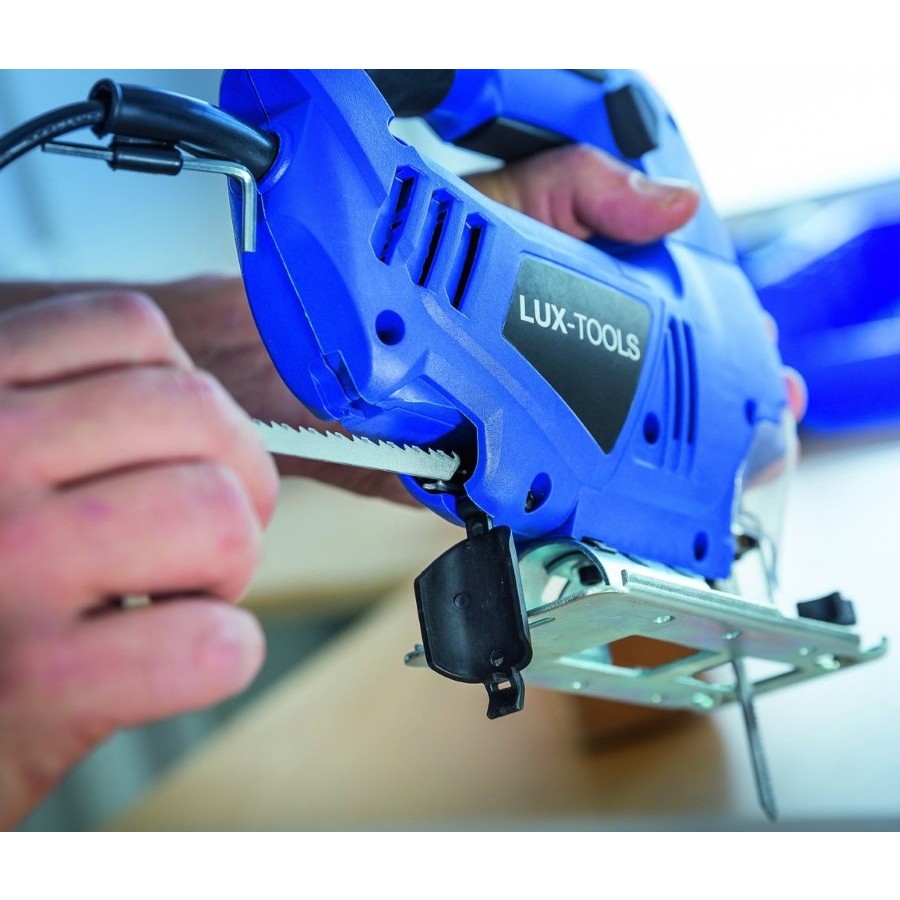 Электролобзик от компании LUX, модель STS-750/85, Тип переносной, Потребляемая мощность 750 Вт и Мин. частота 800 ход/мин, а также Макс. частота 3000 ход/мин.