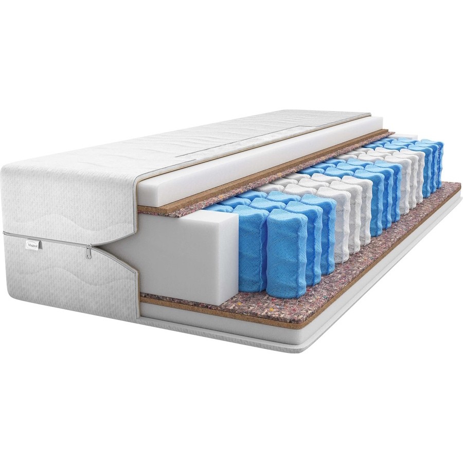 Матрасы от компании Magnat, модель Atena 140x200, Тип пружинный (независимый), Жесткость средняя / выше средней (3/4), двусторонний и Мультизональный +, а также Количество слоев 7 шт.