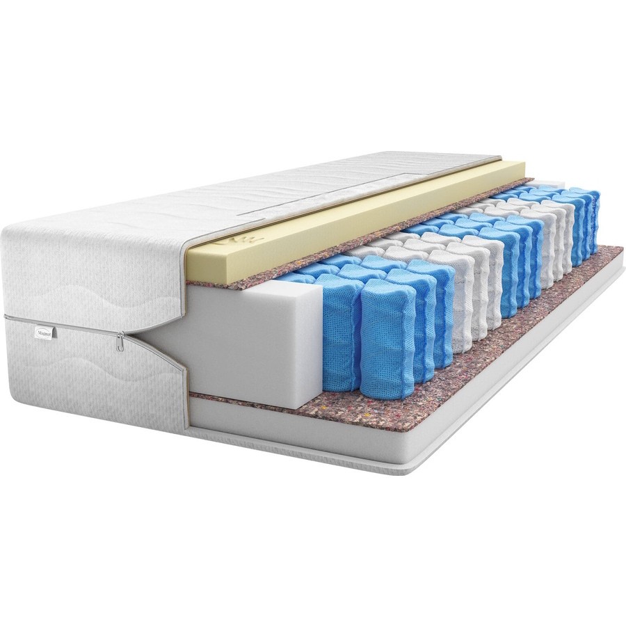 Матрасы от компании Magnat, модель Foster 140x200, Тип пружинный (независимый), Жесткость ниже средней / средняя (2/3), двусторонний и Мультизональный +, а также Количество слоев 5 шт.