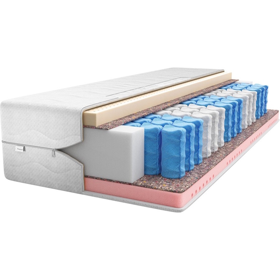 Матрасы от компании Magnat, модель Naos 160x200, Тип пружинный (независимый), Жесткость ниже средней / выше средней (2/4), двусторонний и Мультизональный +, а также Количество слоев 5 шт.