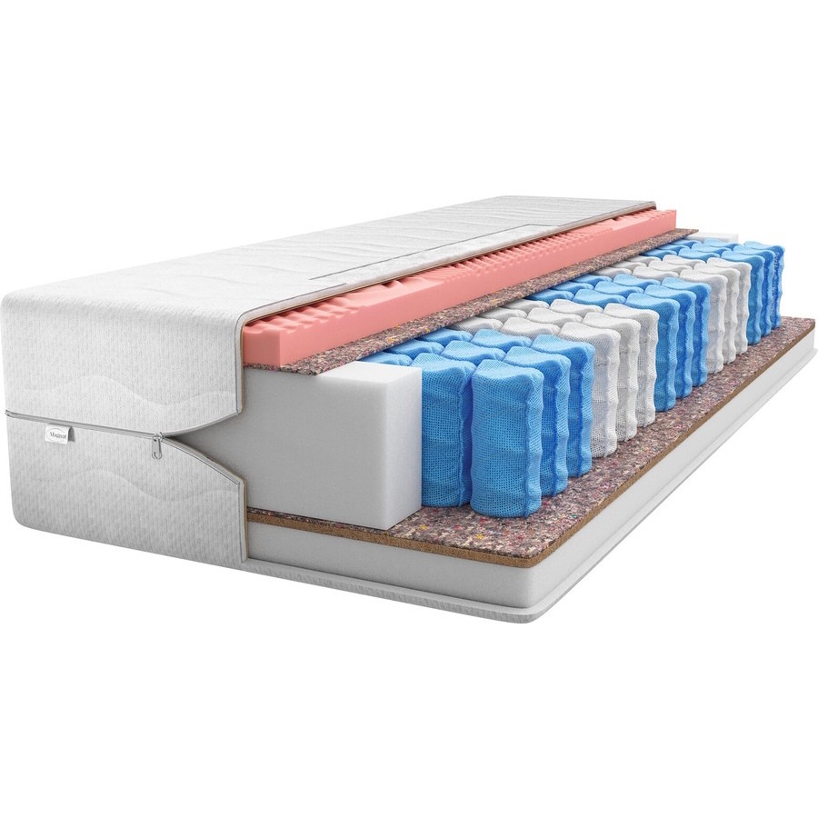 Матрасы от компании Magnat, модель Wega 140x200, Тип пружинный (независимый), Жесткость ниже средней / выше средней (2/4), двусторонний и Мультизональный +, а также Количество слоев 6 шт.