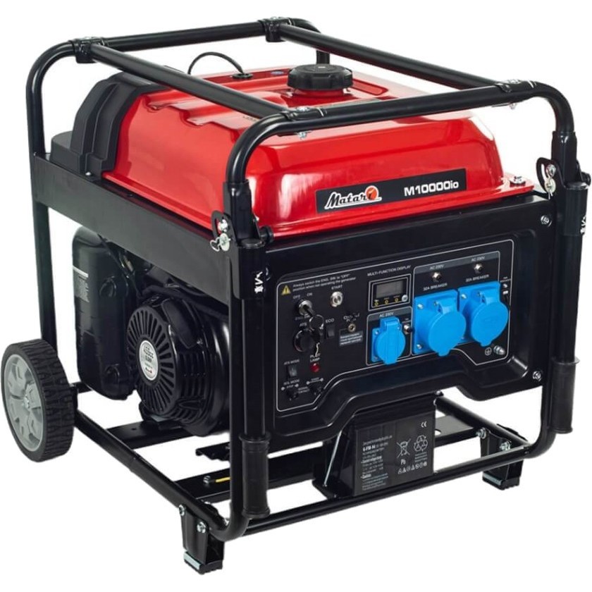 Генераторы от компании Matari, модель M10000io, Топливо бензин, Выходное напряжение 230 B и Номинальная мощность 9.5 кВт, а также Максимальная мощность 10 кВт.