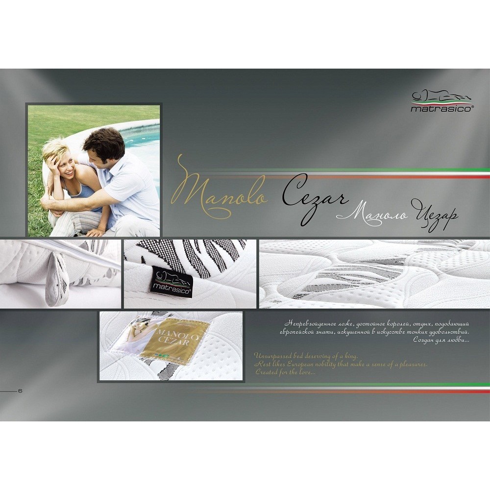 Матрасы от компании Matrasico, модель Manolo Cezar 140х190, Тип беспружинный, Жесткость средняя / высокая (3/5), двусторонний и Количество слоев 4 шт, а также Наполнитель пенополиуретан, кокосовая койра.