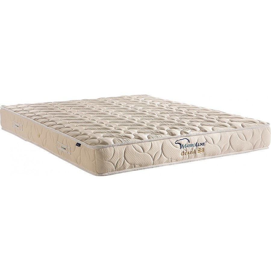 Матрасы от компании Matroluxe, модель Grand S3 90х200, Тип пружинный (независимый) / Pocket spring /, Жесткость выше средней (4) и Количество слоев 5 шт, а также Наполнитель шерсть, латекс, термоволокно, хлопок.