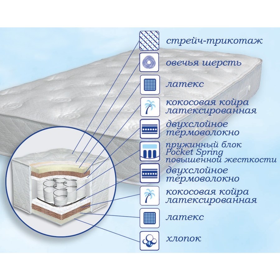 | Наполнитель | шерсть, латекс, кокосовая койра, термоволокно, хлопок |