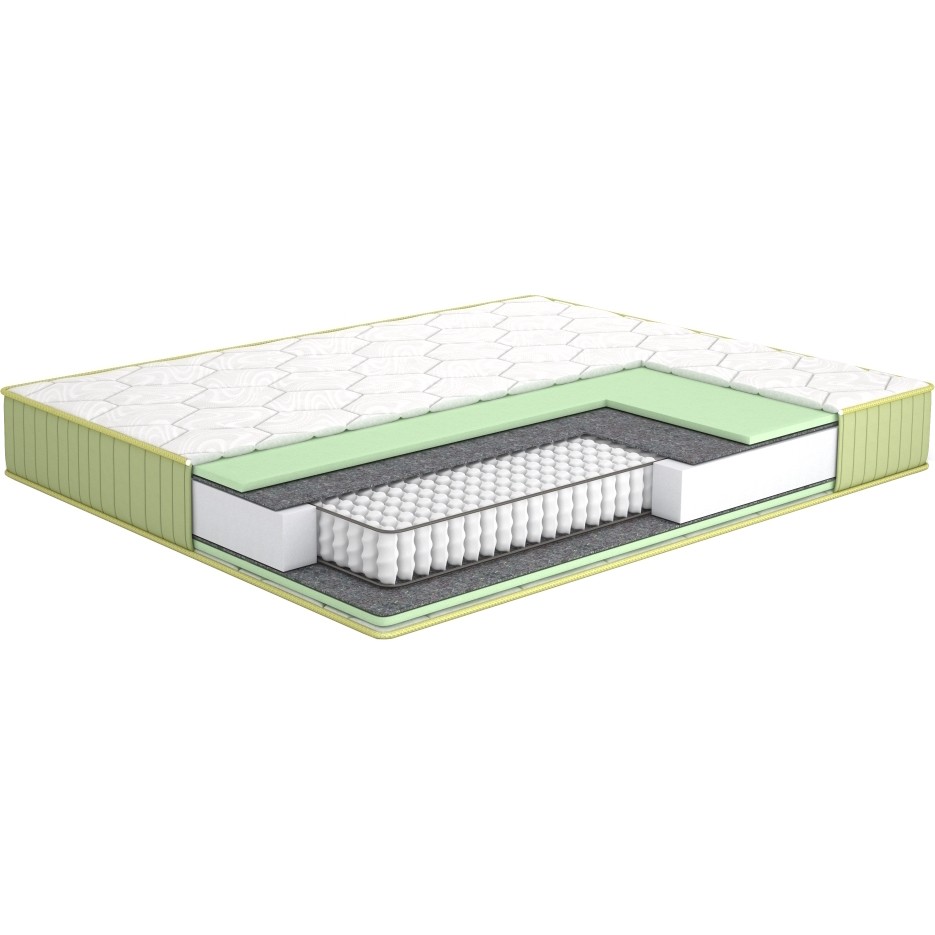 Матрасы от компании Matroluxe, модель Naturelle Spring 150x190, Тип пружинный (независимый), Жесткость ниже средней и Количество слоев 5 шт, а также Наполнитель термофайбер, пена (Green Special).