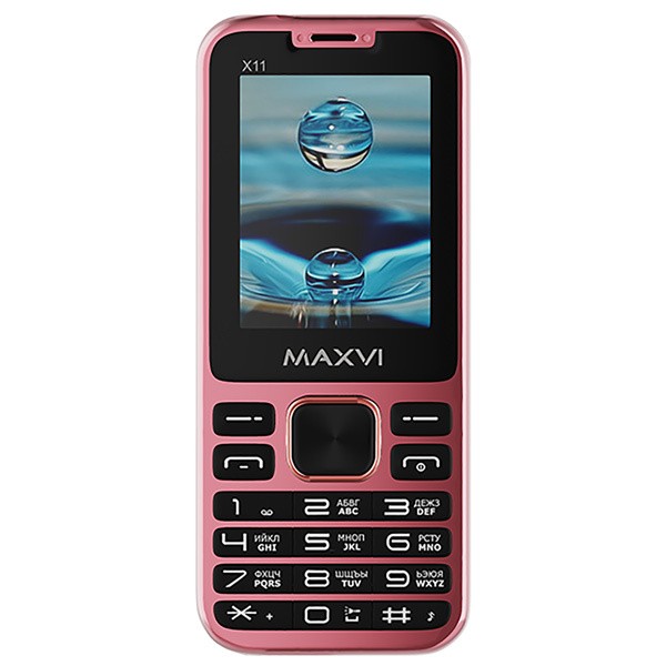 Мобильный телефон от компании Maxvi, модель X11 (розовый), Тип устройства телефон, Стандарты связи GSM и Операционная система отсутствует, а также Слоты для карт 2 SIM.