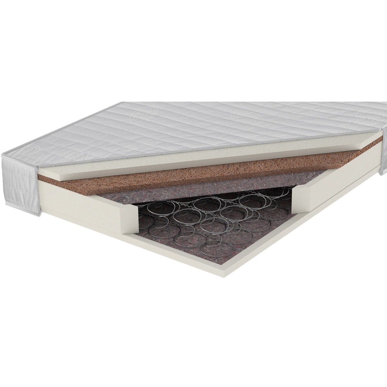 Матрасы от компании Meble Polskie, модель Merkury 180x200, Тип пружинный (Боннель), Жесткость средняя / высокая (3/5), двусторонний и Количество слоев 6 шт, а также Наполнитель войлок, пенополиуретан, кокосовая койра.