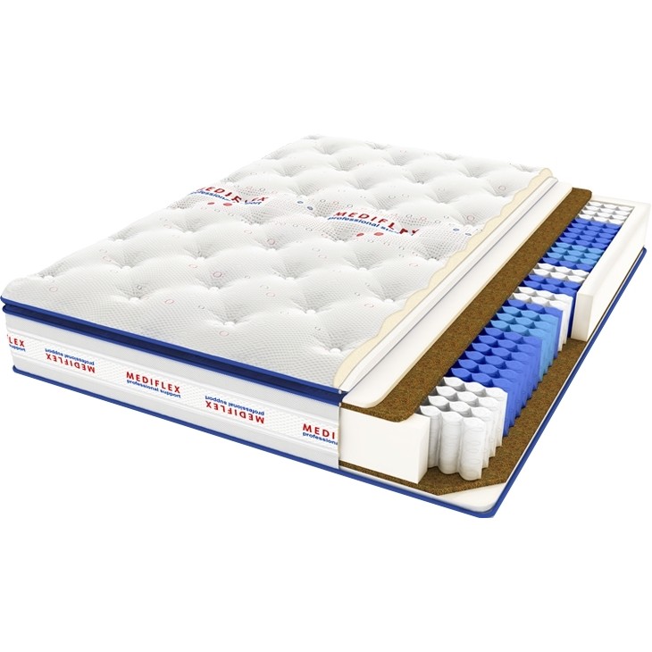 Матрасы от компании Mediflex, модель Perfect Body 200x200, Тип пружинный (независимый), Жесткость средняя и Мультизональный +, а также Количество слоев 5 шт.