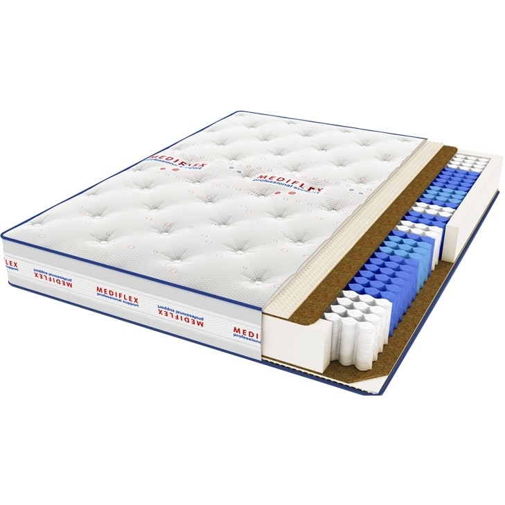 Матрасы от компании Mediflex, модель Spine Care 120x190, Тип пружинный (независимый), Жесткость средняя и Мультизональный +, а также Количество слоев 5 шт.