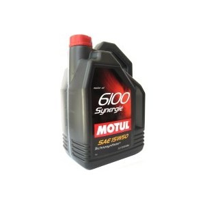 Моторные масла от компании Motul, модель 6100 Synergie 15W-50 4L, Тип полусинтетическое, Двигатель бензиновый / дизельный / газ и Объем 4 л, а также SAE 15w-50.