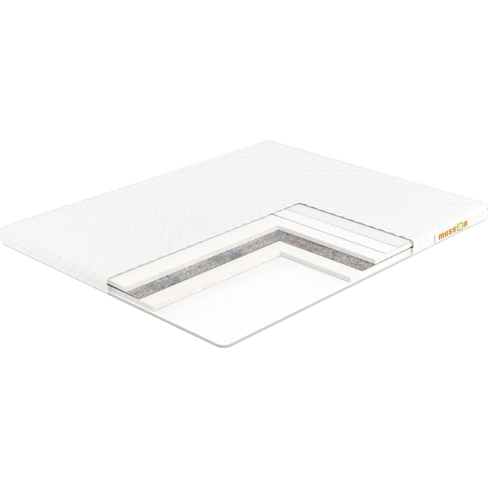 Матрасы от компании Musson, модель Futo Soft 80x190, Тип беспружинный, Жесткость выше средней и Количество слоев 3 шт, а также Наполнитель пена EcoFlex, термовойлок.