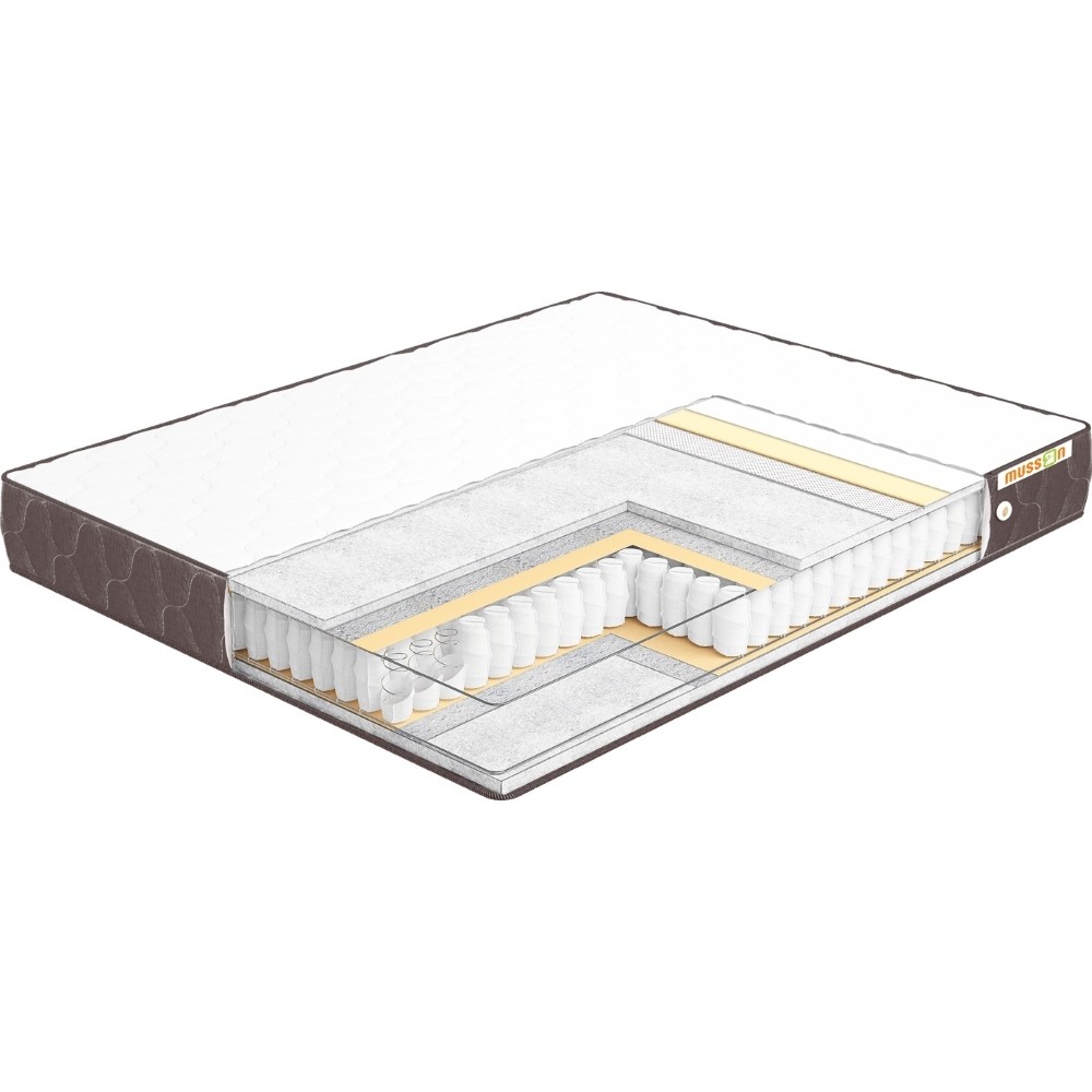 Матрасы от компании Musson, модель Optima Soft 100x100, Тип пружинный (независимый), Жесткость средняя и Количество слоев 7 шт, а также Наполнитель флексовойлок, термовойлок, спанбонд.