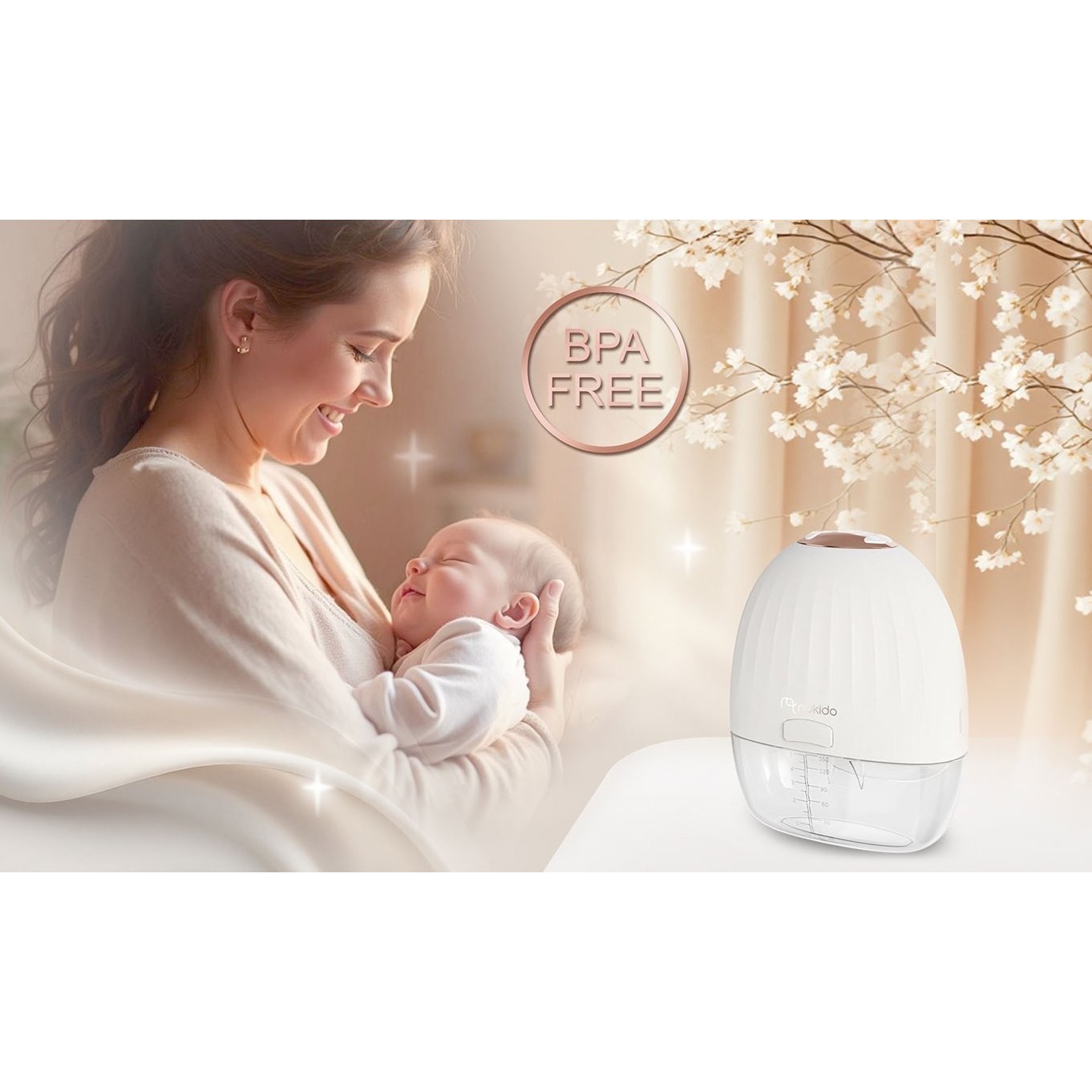 Молокоотсосы от компании Nukido, модель NK-964, Тип электрический / 3-фазный, Источник питания аккумулятор и Объем баночки 150 мл, а также Функции и возможности 9 уровней сцеживания / 9 уровней стимуляции / дисплей.