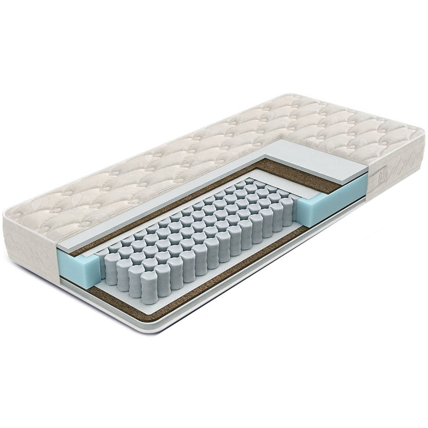 Матрасы от компании Ormatek, модель Optima Mix EVS500 120x200, Тип пружинный (независимый), Жесткость средняя (3) и Количество слоев 7 шт, а также Наполнитель холлкон, кокосовая койра, спанбонд.