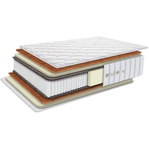 Матрас от компании OrthoSleep, модель Bari Mix 2000 (80x190), Тип пружинный (независимый), Жесткость средняя / высокая (3/5), двусторонний и Количество слоев 7 шт, а также Наполнитель кокосовая койра, пенополиуретан (EcoFoam), войлок.
