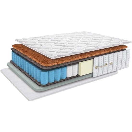Матрасы от компании OrthoSleep, модель Comfort Mix Memory 200x190, Тип пружинный (независимый), Жесткость средняя / высокая (3/5), двусторонний и Количество слоев 5 шт, а также Наполнитель вискоэластик, войлок, кокосовая койра.