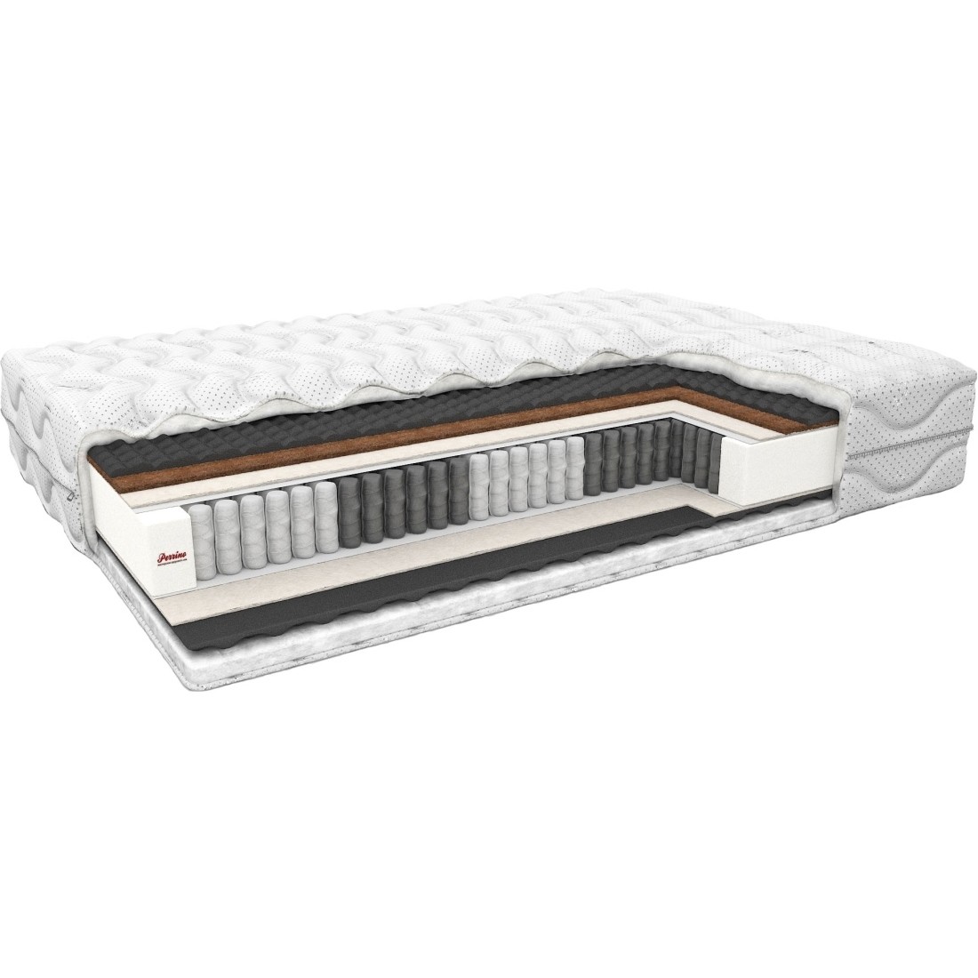 Матрасы от компании Perrino, модель Active Expert 200x200, Тип пружинный (независимый), Жесткость средняя / высокая (3/5), двусторонний и Количество слоев 6 шт, а также Наполнитель ActiveCoal, кокосовая койра, войлок.