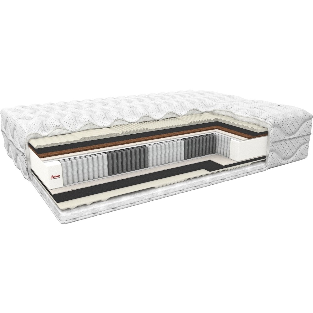 Матрасы от компании Perrino, модель Active Organik 80x190, Тип пружинный (независимый), Жесткость низкая / средняя (1/3), двусторонний и Количество слоев 8 шт, а также Наполнитель латекс, ActiveCoal, кокосовая койра, войлок.