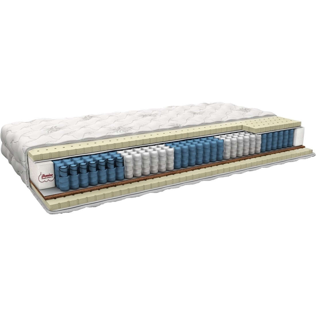Матрасы от компании Perrino, модель Tristan 120x195, Тип пружинный (независимый), Жесткость низкая / средняя (1/3), двусторонний и Количество слоев 6 шт, а также Наполнитель латекс, термовойлок, кокосовая койра.