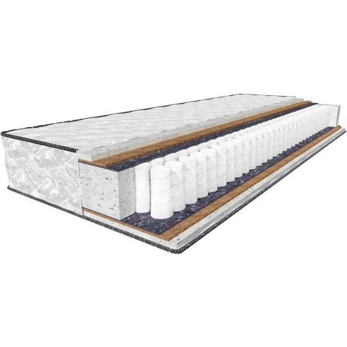 Матрасы от компании Relax, модель Agat Plus+ 22 160x200, Тип пружинный (независимый), Жесткость выше средней (4) и Количество слоев 7 шт, а также Наполнитель пена (Mix Foam), кокосовая койра, термовойлок.