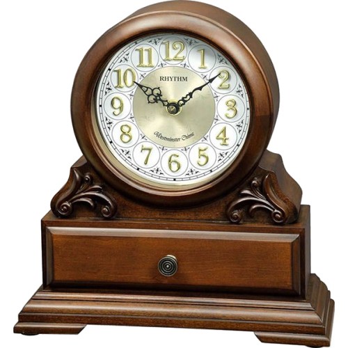 Настольные часы от компании Rhythm, модель CRH261NR06, Цвет коричневый, Тип циферблата стрелочный и Форма циферблата круглая, а также Разметка циферблата арабские.